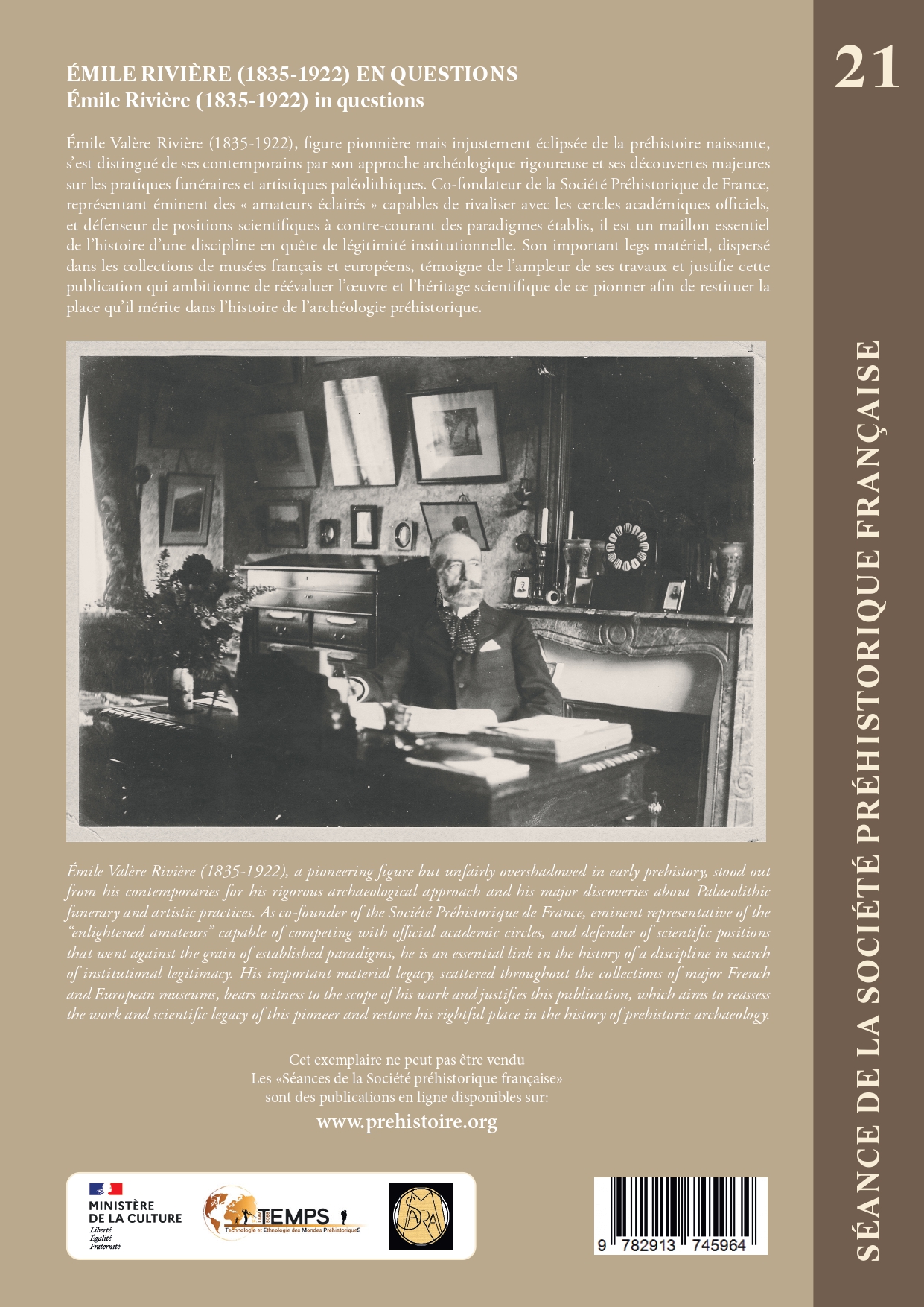Émile Valère Rivière (1835-1922), a pioneering figure but unfairly overshadowed in early prehistory, stood out from his contemporaries for his rigorous archaeological approach and his major discoveries about Palaeolithic funerary and artistic practices. As co-founder of the Société Préhistorique de France, eminent representative of the “enlightened amateurs” capable of competing with official academic circles, and defender of scientific positions that went against the grain of established paradigms, he is an essential link in the history of a discipline in searchof institutional legitimacy. His important material legacy, scattered throughout the collections of major French and European museums, bears witness to the scope of his work and justifies this publication, which aims to reassess the work and scientific legacy of this pioneer and restore his rightful place in the history of prehistoric archaeology.